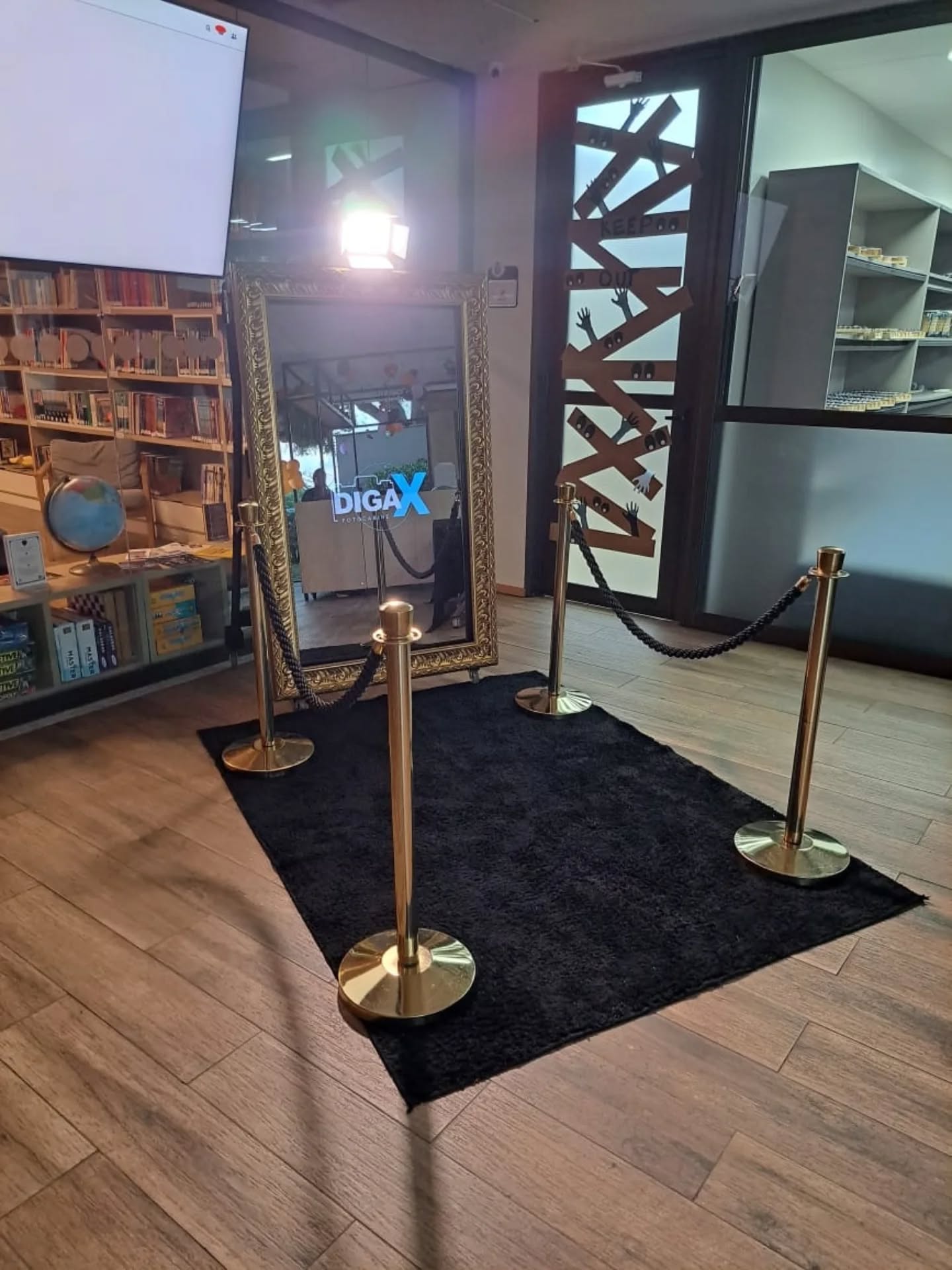 Destaque no mercado de eventos, o espelho mágico Fotográfico é um sucesso, principalmente por ser uma opção que irá compor a sua decoração do seu evento e também, os seus convidados interagem com o espelho de uma forma divertida, onde a sua própria imagem refletida será impressão instantaneamente. Pode ser alugado para casamento, aniversário, 15 anos, todos os eventos que quiser dar uma foto lembrança.